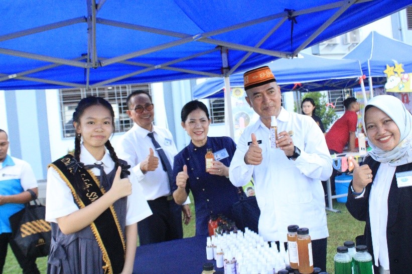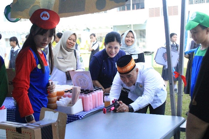 Murid membuka stan penjualan dan mempromosikan produk mereka dengan