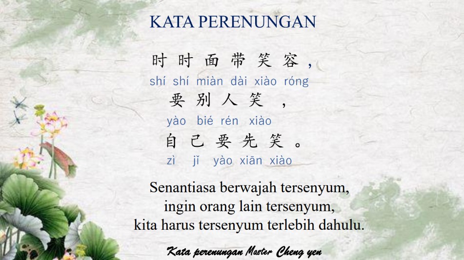 Contoh kata perenungan Master Cheng Yen yang digunakan di Sekolah Cinta Kasih Tzu Chi Singkawang.